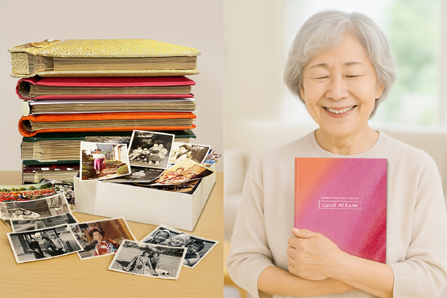 「両親が亡くなって家を片づけることになった」「自分がいなくなったあと、子どもに迷惑をかけたくない」。写真は“捨てられないモノ”の代表格です。だからこそ、「自分の人生をコンパクトまとめる」という行為は、心の整理=儀式としての意味を持ちます。