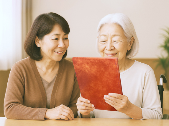 思い出を「介護の時間」に共有することで、介護や見守りの現場が和やかになります。家族の会話をつなぐ回想コミュニケーションツールとしてもご利用いただいています